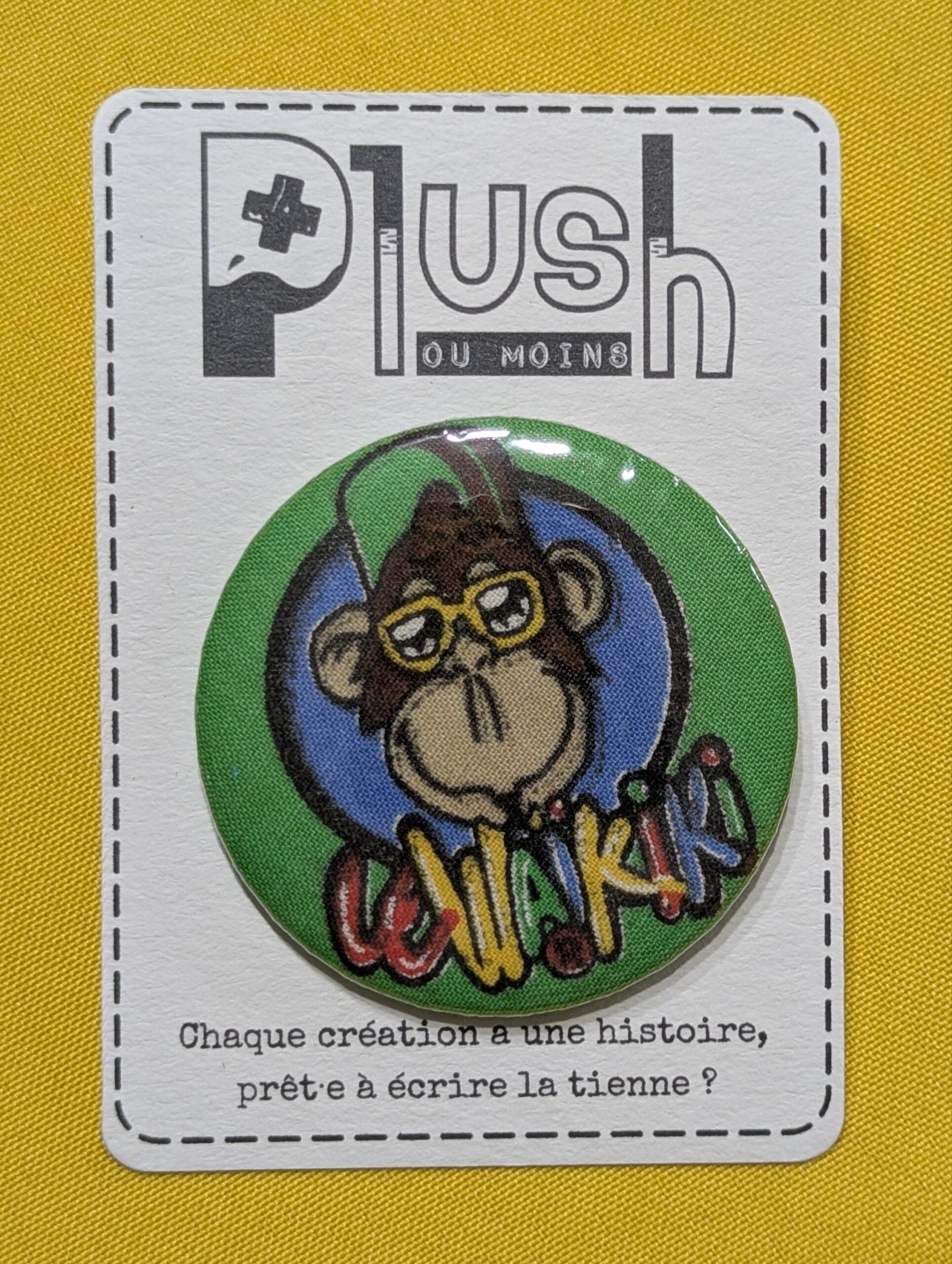 Ce badge upcyclé est né d’un petit bout de tissu rétro qui avait encore beaucoup à raconter. Compact mais plein de caractère, il transforme ton look en un clin d’œil : veste en jean, sac banane, tote-bag, trousse… et t’accompagne partout.