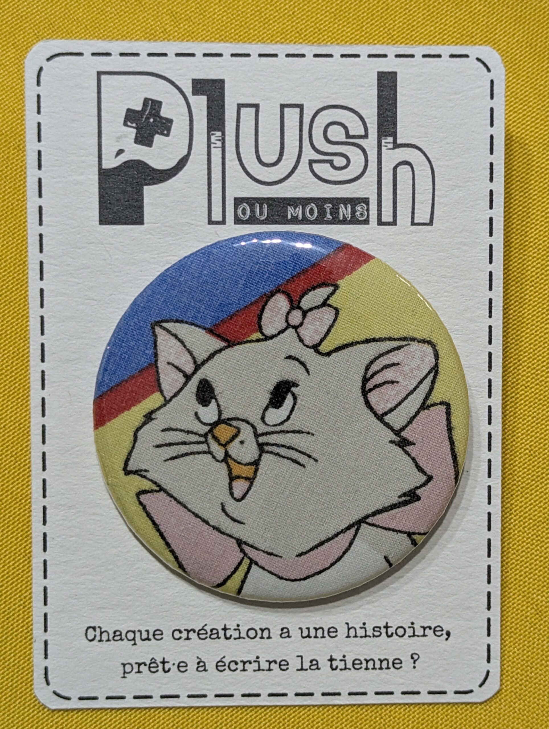 Ce badge upcyclé est né d’un petit bout de tissu rétro qui avait encore beaucoup à raconter. Compact mais plein de caractère, il transforme ton look en un clin d’œil : veste en jean, sac banane, tote-bag, trousse… et t’accompagne partout.