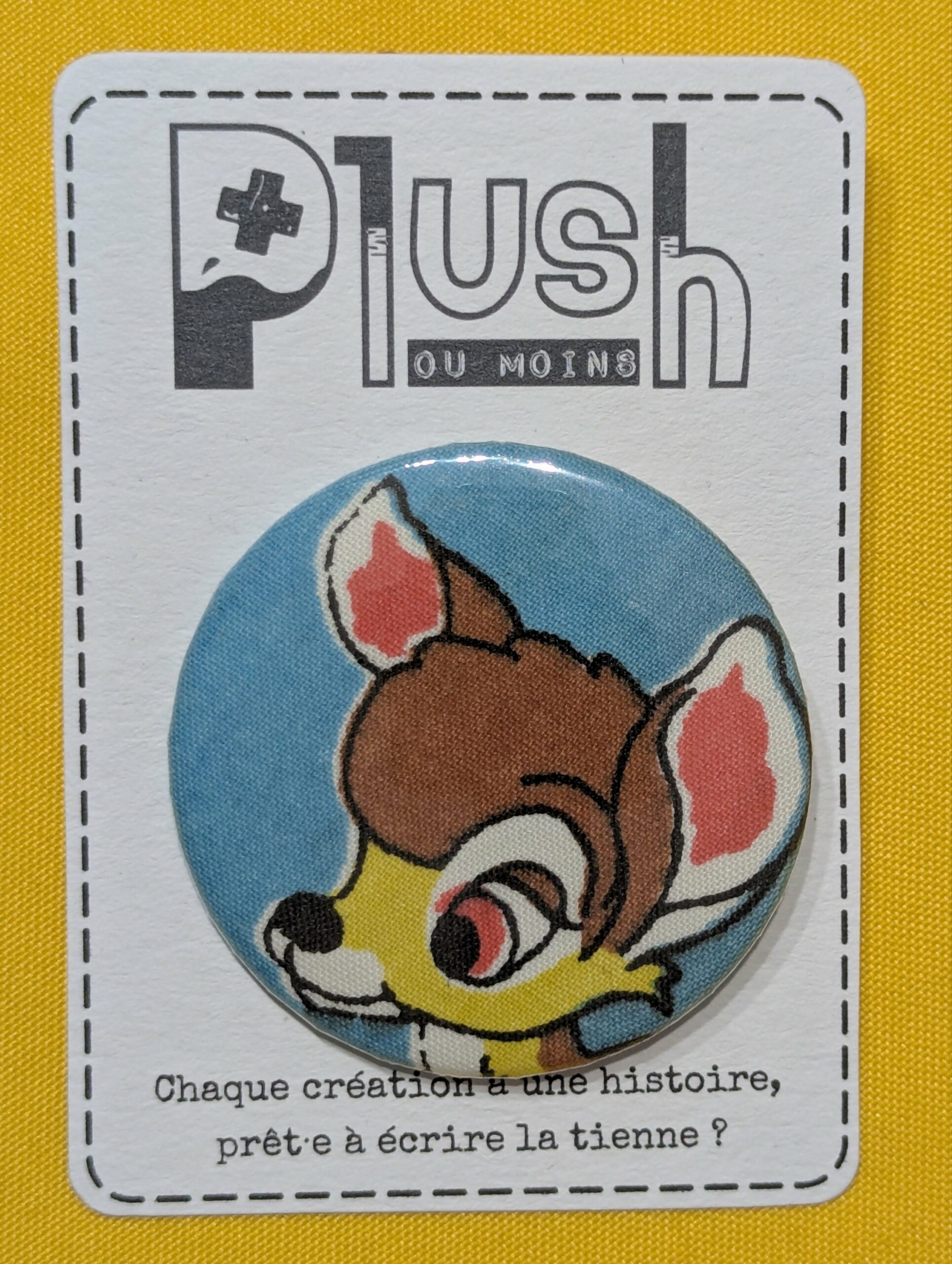 Ce badge upcyclé est né d’un petit bout de tissu rétro qui avait encore beaucoup à raconter. Compact mais plein de caractère, il transforme ton look en un clin d’œil : veste en jean, sac banane, tote-bag, trousse… et t’accompagne partout.