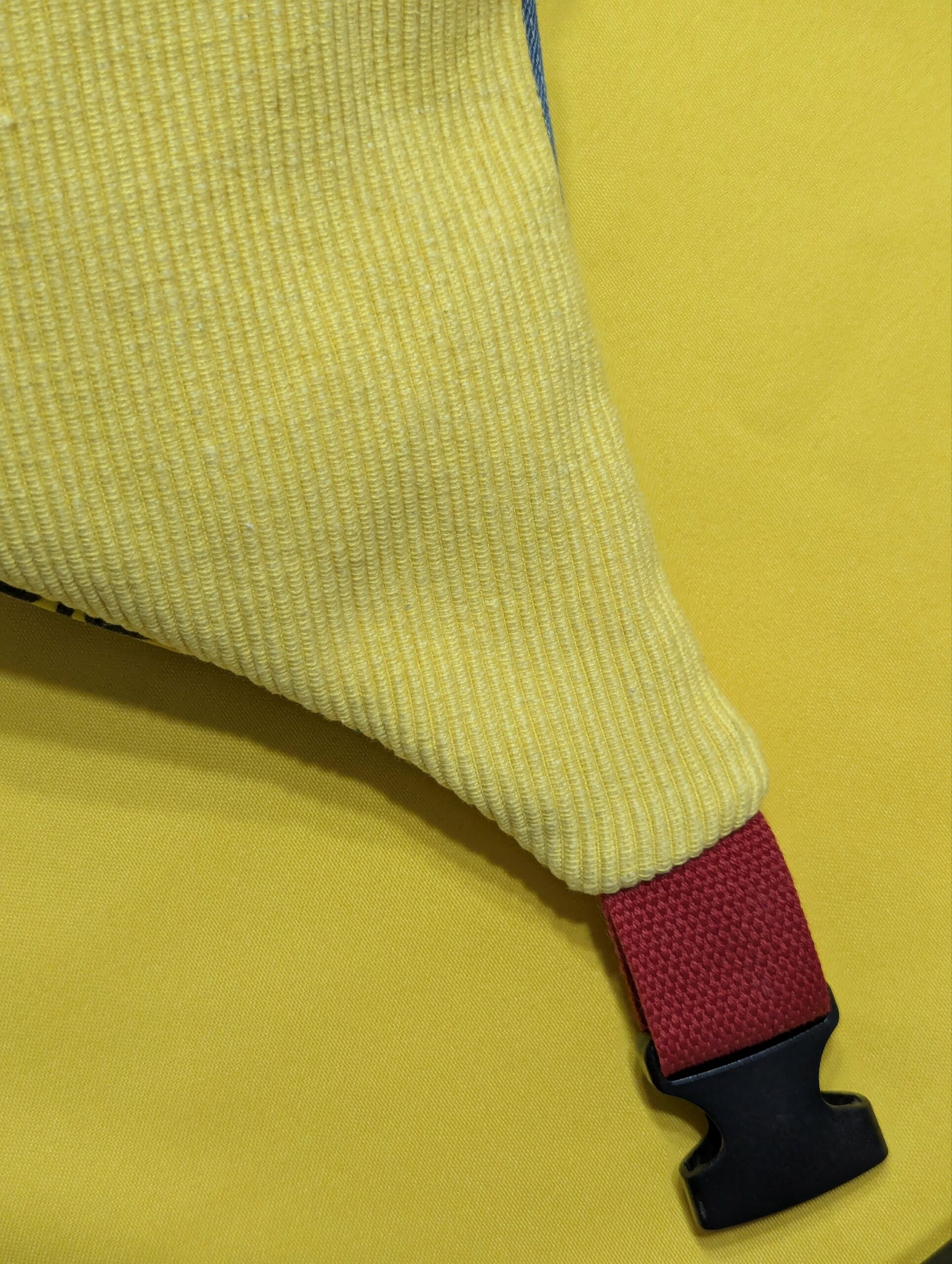 Cette banane est née d’un drap vintage, d’un vêtement oublié ou d’un tissu rétro qui avait soif d’aventure. Elle adore les brocantes, les apéros en terrasse, et elle te suivra partout, même au supermarché.