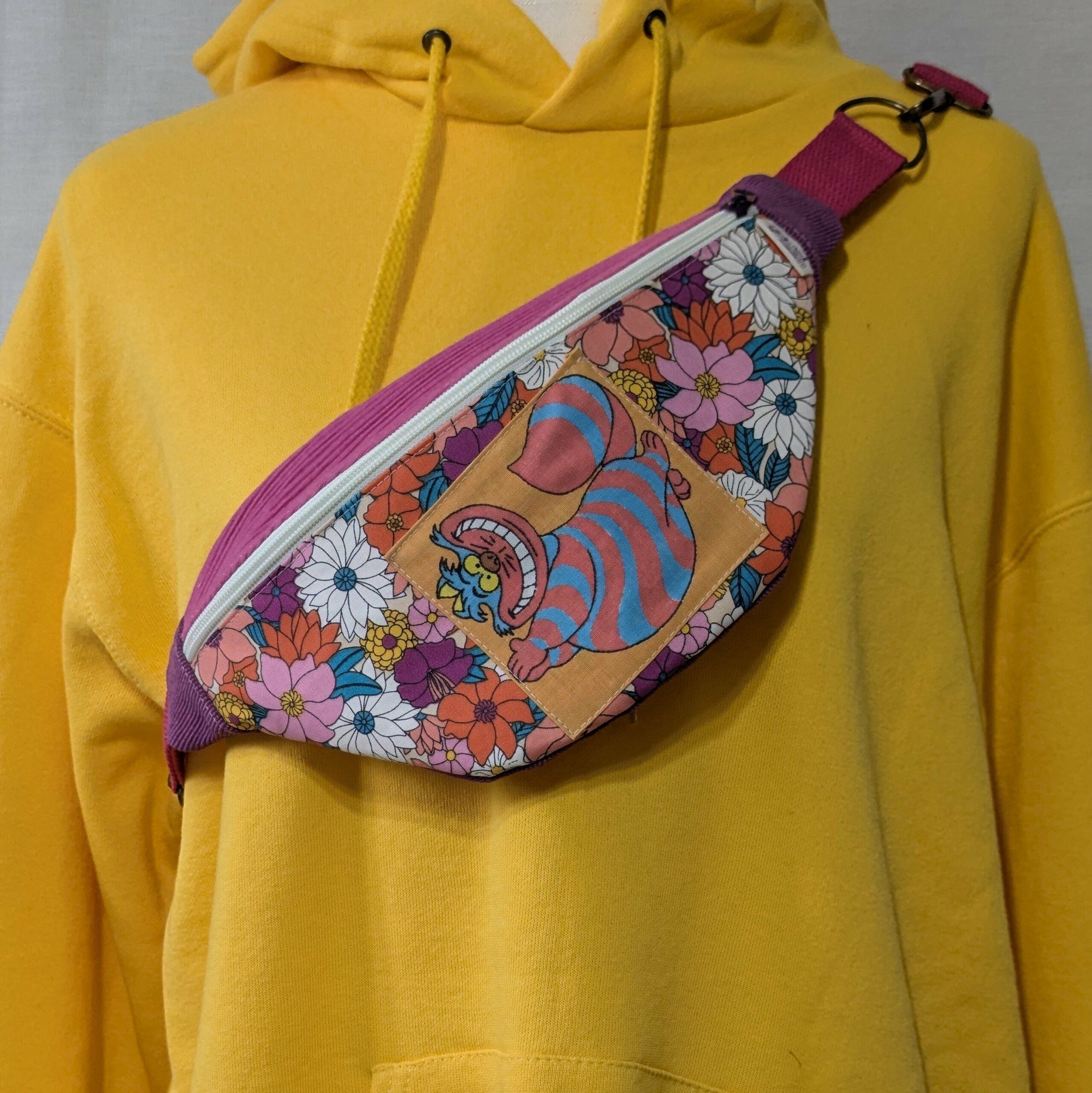 Cette banane est née d’un drap vintage, d’un vêtement oublié ou d’un tissu rétro qui avait soif d’aventure. Elle adore les brocantes, les apéros en terrasse, et elle te suivra partout, même au supermarché.