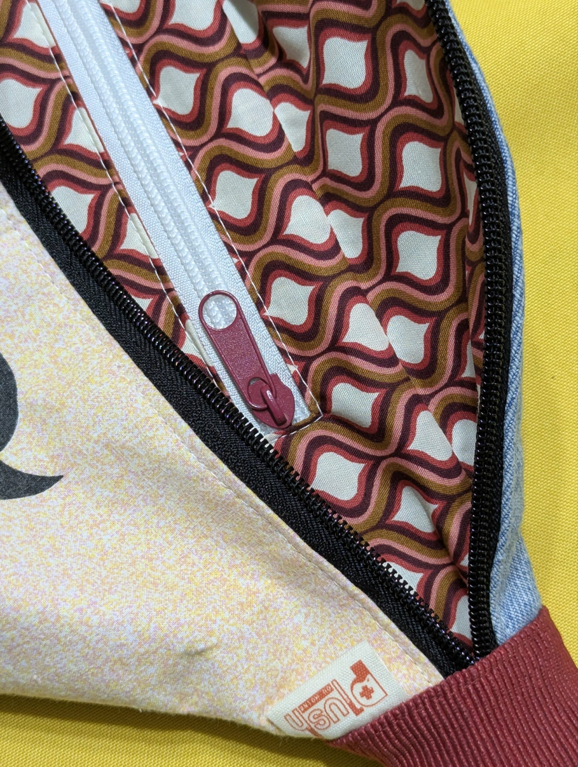Cette banane est née d’un drap vintage, d’un vêtement oublié ou d’un tissu rétro qui avait soif d’aventure. Elle adore les brocantes, les apéros en terrasse, et elle te suivra partout, même au supermarché.